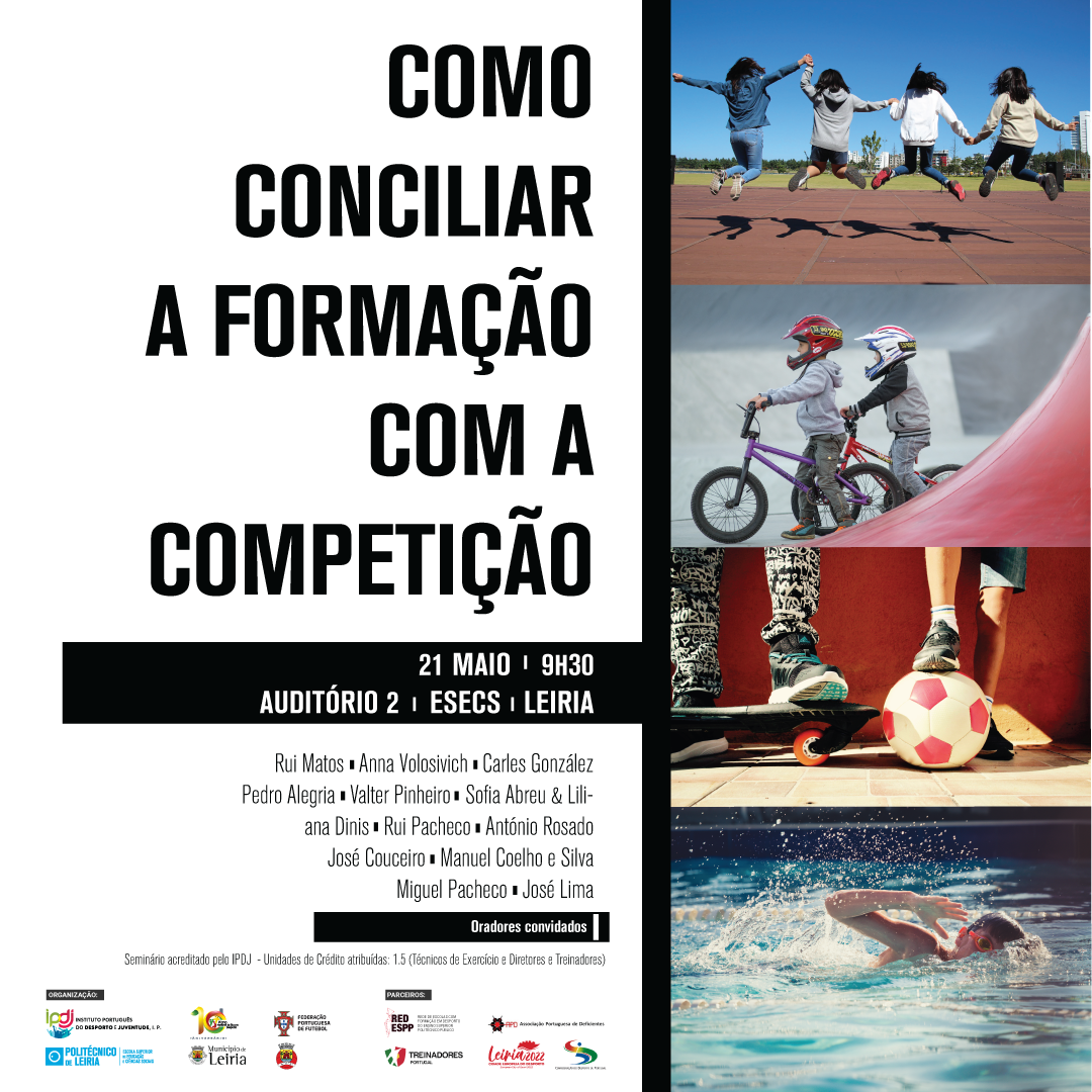 No dia 21 de maio de 2022, realizar-se-á no Instituto Politécnico de Leiria um Seminário sobre "Formação Desportiva - Como conciliar a formação com a competição?". O seminário visa criar uma oportunidade de colocar vários intervenientes no processo de desenvolvimento do jovem praticante a refletir sobre o impacto da deteção e seleção muito precoce de talentos para a competição de Alto Rendimento, o desenvolvimento pela progressão em escalões de formação e como unir a competição e a formação num ambiente desportivo saudável, mas também contribuir para o maior esclarecimento possível de todos os agentes desportivos sobre estas problemáticas, em particular as suas consequências nomeadamente o abandono prematuro da prática desportiva.